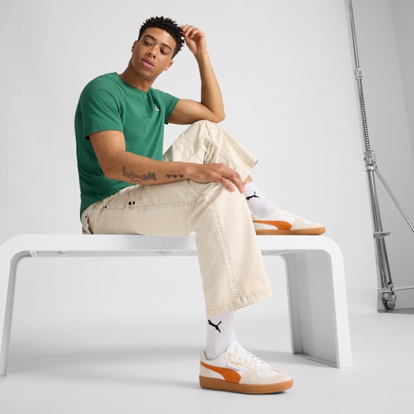 Прямо из архивов - PUMA Palermo. Эти классические кроссовки для бега по вертикали возрождаются сегодня с фирменной конструкцией T-образного носка, невероятно яркими цветовыми блоками и мягкими материалами. Их дизайн основан на футбольном наследии PUMA, но при этом привлекает современных сникерхедов и ценителей уличной моды.