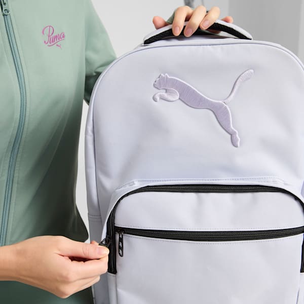 Храните все необходимое в этом универсальном рюкзаке в стиле PUMA. Вместительное отделение для хранения и регулируемые лямки делают его идеальным выбором для тех, кто занимается в спортзале или просто ходит по коридорам.