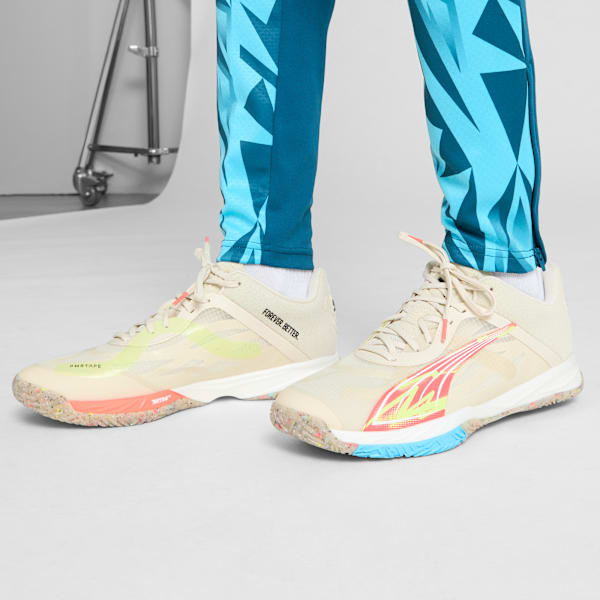 Ускорьте свою игру в гандбольных кроссовках Accelerate NITRO SQD FOREVER.BETTER. Инновационная промежуточная подошва NITRO SQD обеспечивает лучшую в своем классе амортизацию и отскок, а 3D-пятка и синтетический каркас обеспечивают устойчивость для точных поворотов и быстрого ускорения. Эта версия входит в линейку FOREVER.BETTER. В комплект входят гандбольные кроссовки, в верхней части которых не менее 20% переработанных материалов.