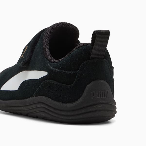 Для вашего малыша не стесняйтесь двигаться благодаря замшевому верху и стельке SOFTFOAM+, обеспечивающей комфорт на весь день. Ремешок на липучке украшен забавным фольгированным логотипом кота, а KinderFit обеспечивает идеальную посадку для подрастающих искателей приключений. Разработанные для первых шагов, эти кроссовки несут чистую энергию PUMA маленьким подвижникам и активистам.