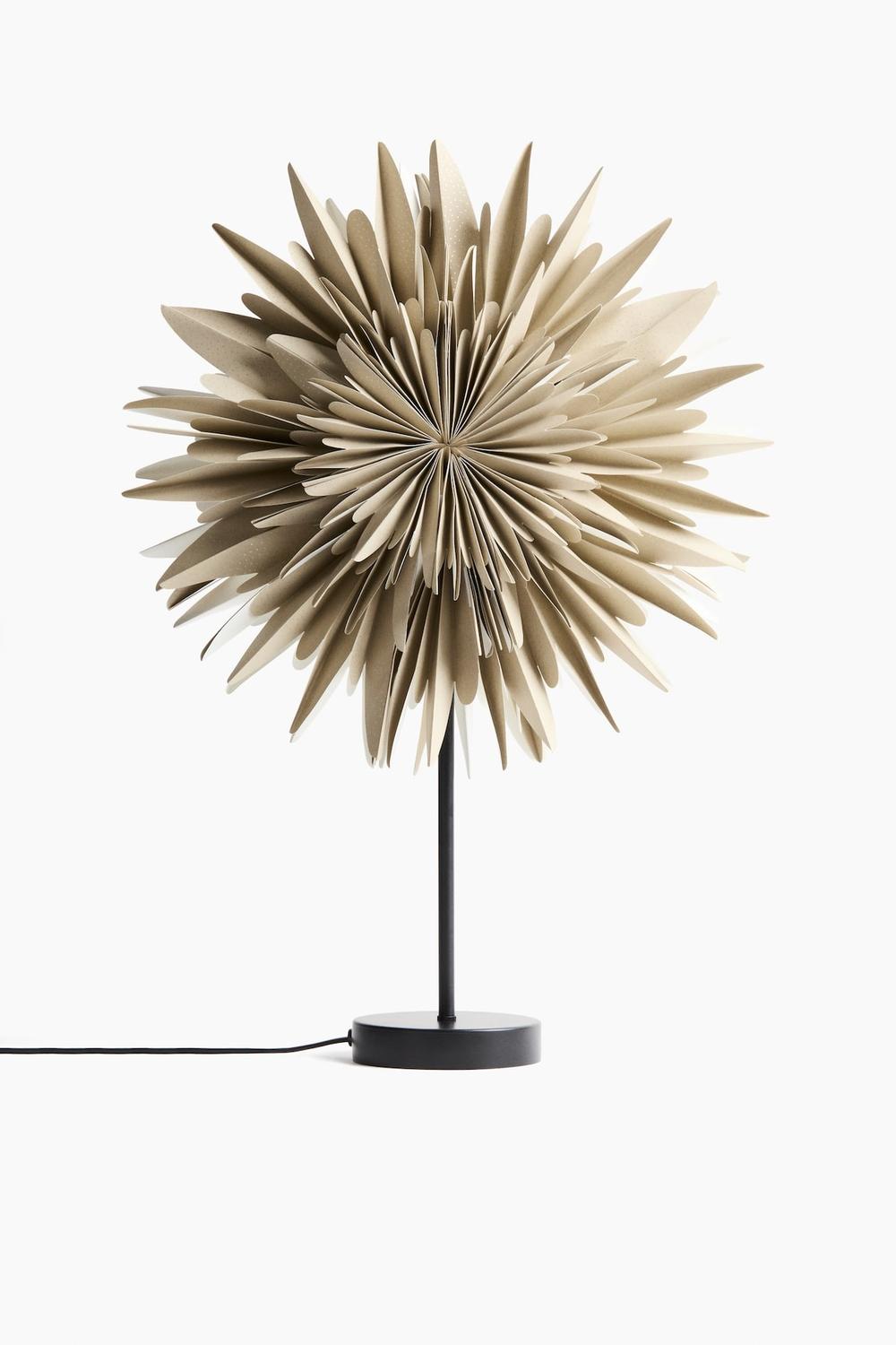 Эта настольная лампа украшена белой бумажной звездой на чёрном основании. Изготовленная из трёх слоёв гофрированной бумаги, она имеет округлую форму, придающую ей игривое зимнее очарование. Эта отдельно стоящая звезда Адвента создаёт уютную праздничную атмосферу и добавляет праздничное настроение в любую комнату. Идеально подходит для установки на окне или серванте.