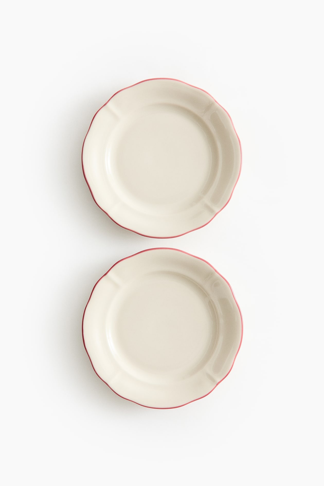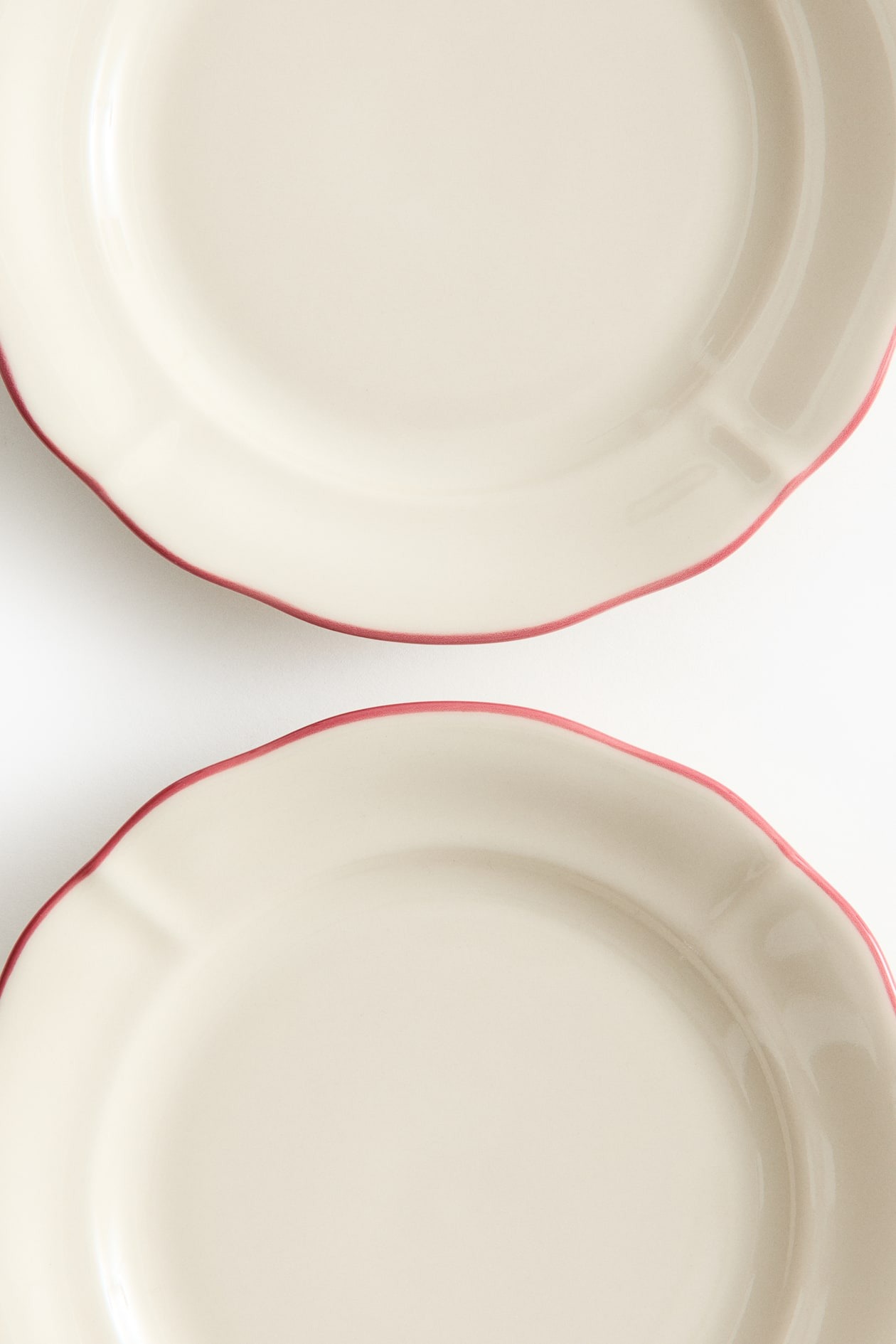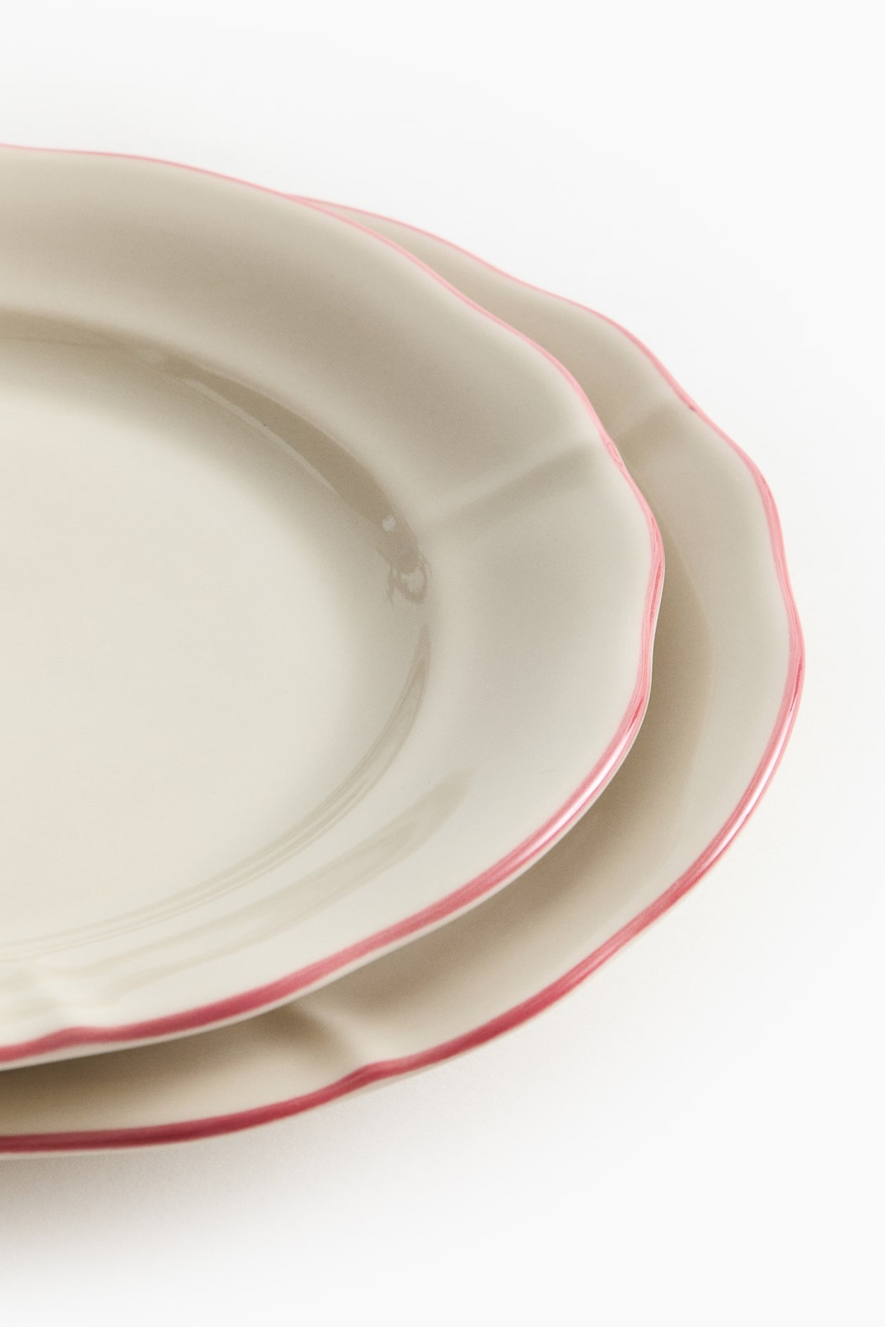 Две старинные керамические тарелки с расписанным вручную ободком.