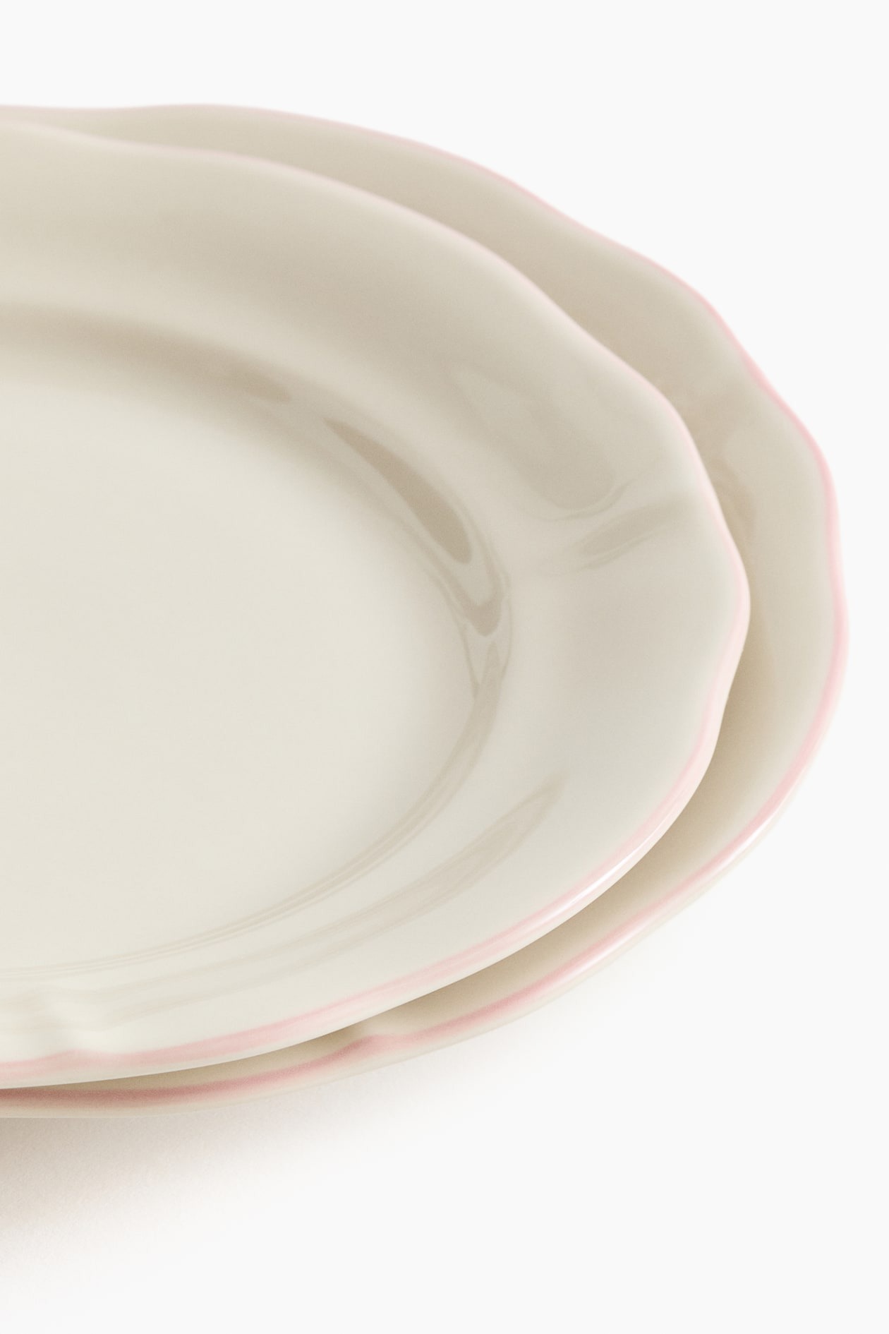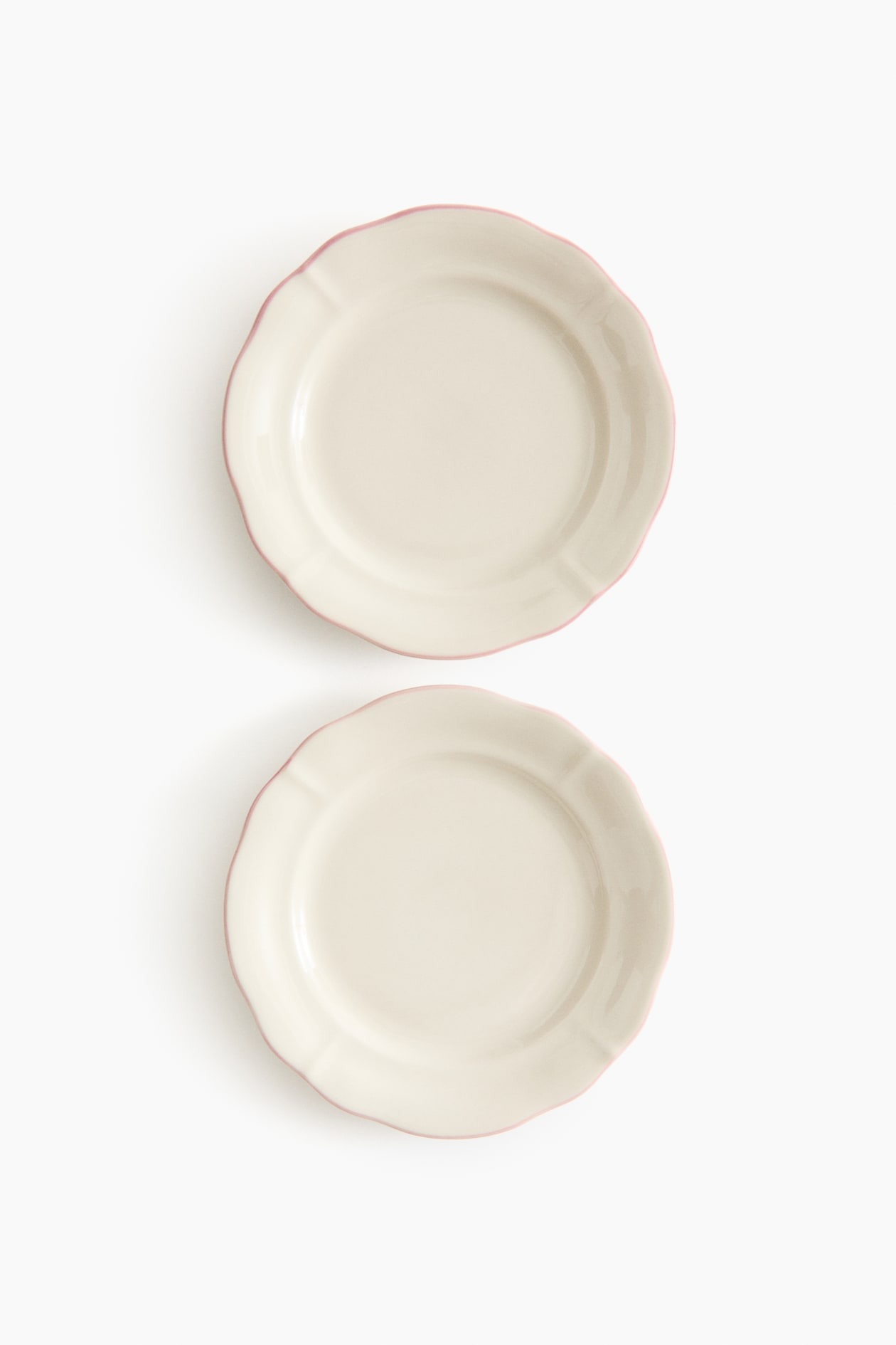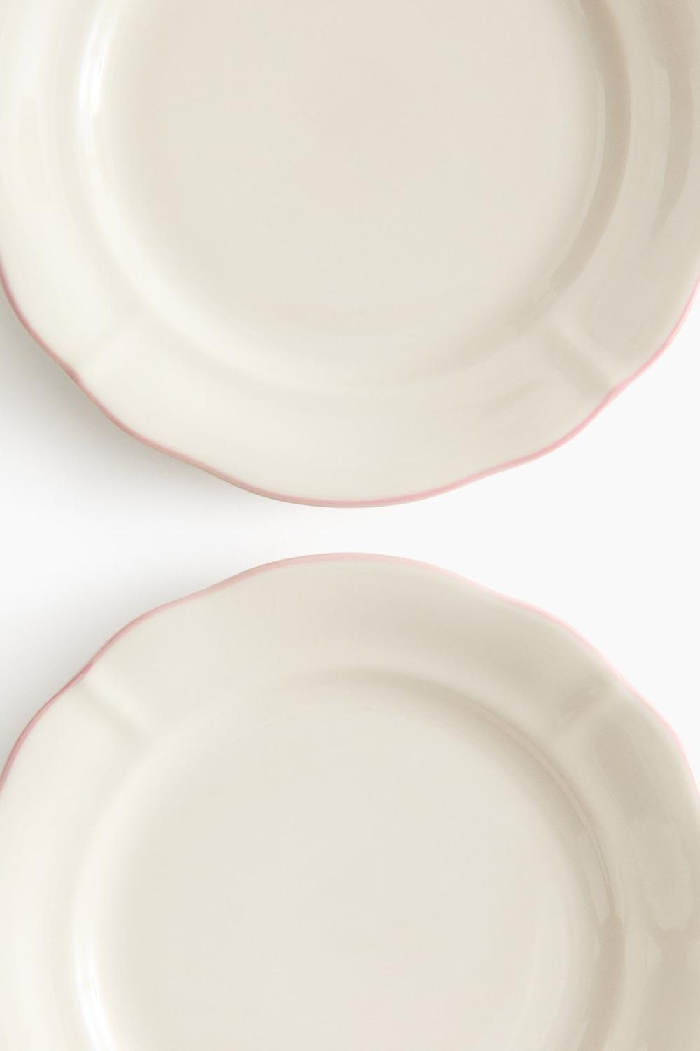 Две старинные керамические тарелки с расписанным вручную ободком.