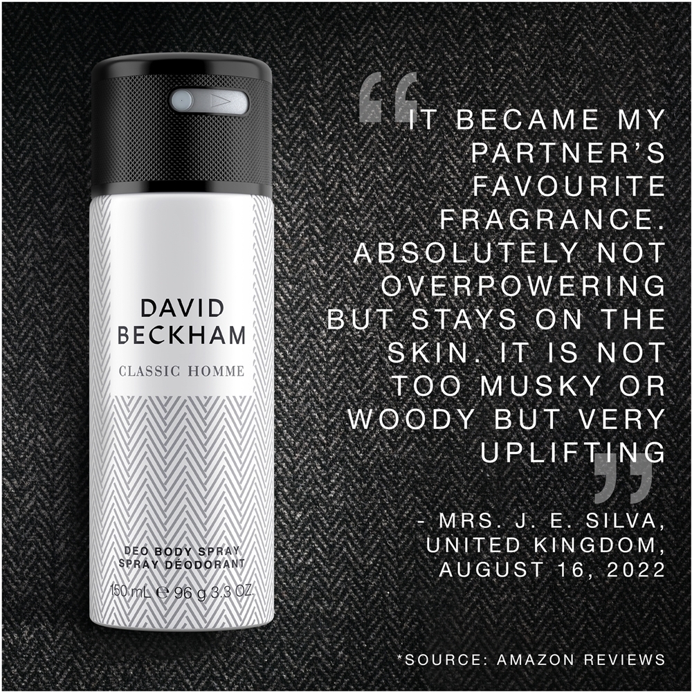 На свидании, вечеринке или встрече с друзьями? Спрей для тела для мужчин David Beckham Classic Homme станет отличным выбором в любой ситуации. Когда вы хотите сиять, он поможет вам почувствовать себя увереннее.