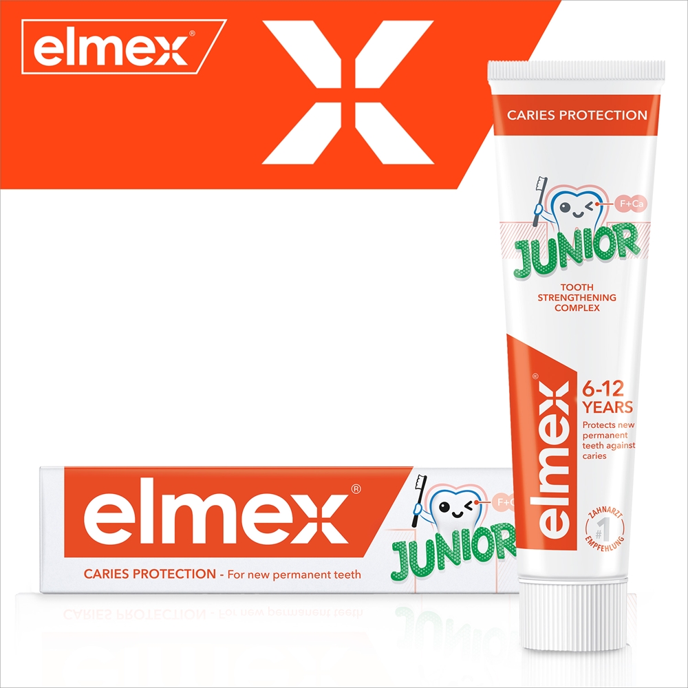 Эмаль прорезывающихся постоянных зубов требует особого ухода, поскольку они менее прочны и менее устойчивы к кариесу. Детская зубная паста Elmex Junior 6-12 лет благодаря технологии Neo-Aminex создает на зубах защитный слой, который укрепляет их и предотвращает потерю минералов. Чтобы иметь здоровые зубы, важно заботиться о них с детства.
