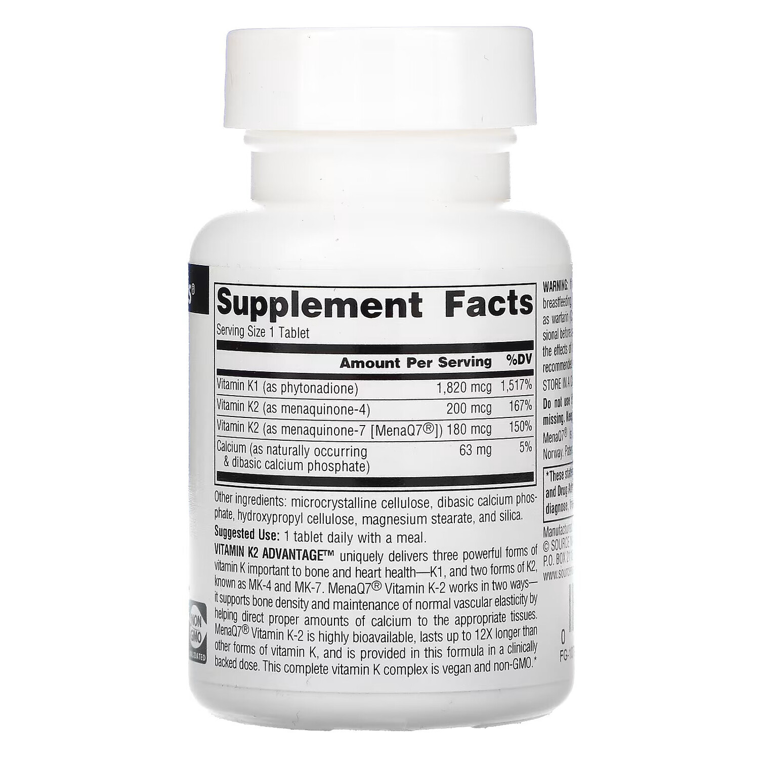 Vitamin K2 Advantage ™ уникальным образом обеспечивает три мощные формы витамина К, важные для здоровья костей и сердца - K1 и две формы K2, известные как MK-4 и MK-7. Витамин K2 от MenaQ7® действует двояко: он поддерживает плотность костей и поддерживает нормальную эластичность сосудов, помогая направлять необходимое количество кальция в соответствующие ткани. Витамин K-2 от MenaQ7® обладает высокой биодоступностью, действует до 12 раз дольше, чем другие формы витамина K, и содержится в этой формуле в клинически подтвержденной дозе. Этот полный комплекс витаминов К предназначен для веганов и не содержит ГМО.