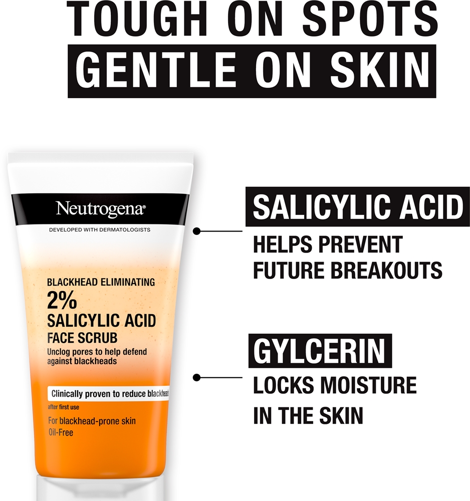 Удалите все загрязнения и предотвратите появление высыпаний с помощью этого глубоко очищающего средства для кожи, склонной к черным точкам. Скраб для лица Neutrogena Blackhead Eliminating 2% Salicylic Acid Face Scrub с салициловой кислотой и натуральными целлюлозными эксфолиантами очищает поры, удаляет излишки жира и тщательно очищает. Средство очищает существующие черные точки и предотвращает образование новых, оставляя кожу гладкой, идеально чистой и свежей.