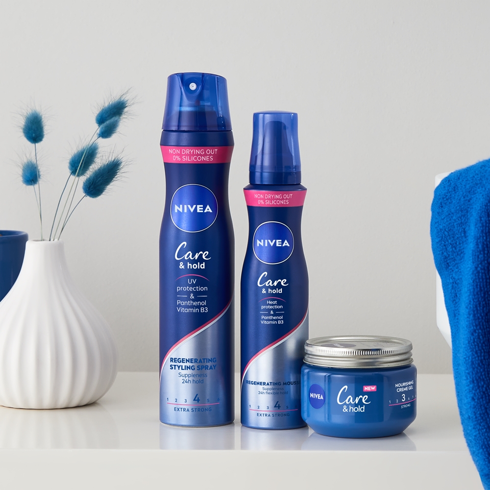 Когда одной расчески, лака или лака для волос недостаточно для создания желаемой укладки, на помощь придет гель для волос NIVEA Care & Hold. Средство поможет вам придать форму желаемой прическе и создать безупречный образ, словно вы только что вышли из салона красоты. Сильно фиксирует и укрепляет, благодаря чему каждая прядь остается на месте, а прическа сохраняет приданную ей форму в течение всего дня.