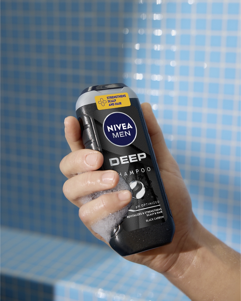 Чтобы волосы оставались здоровыми, блестящими и живыми, важно правильно за ними ухаживать. Правильный уход начинается с тщательного мытья волос. Шампунь NIVEA MEN Deep эффективно удаляет с волос и кожи головы все загрязнения, жир и остатки средств для укладки и других косметических средств. Вы насладитесь ощущением свежести и чистоты, а волосы и кожа головы будут идеально подготовлены к нанесению других средств по уходу и усилят действие активных ингредиентов.