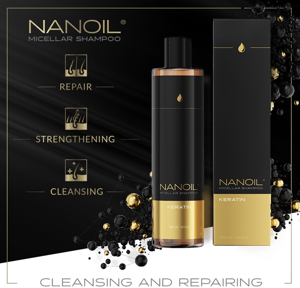 Укрепляющий мицеллярный шампунь с кератином Nanoil, 300 мл