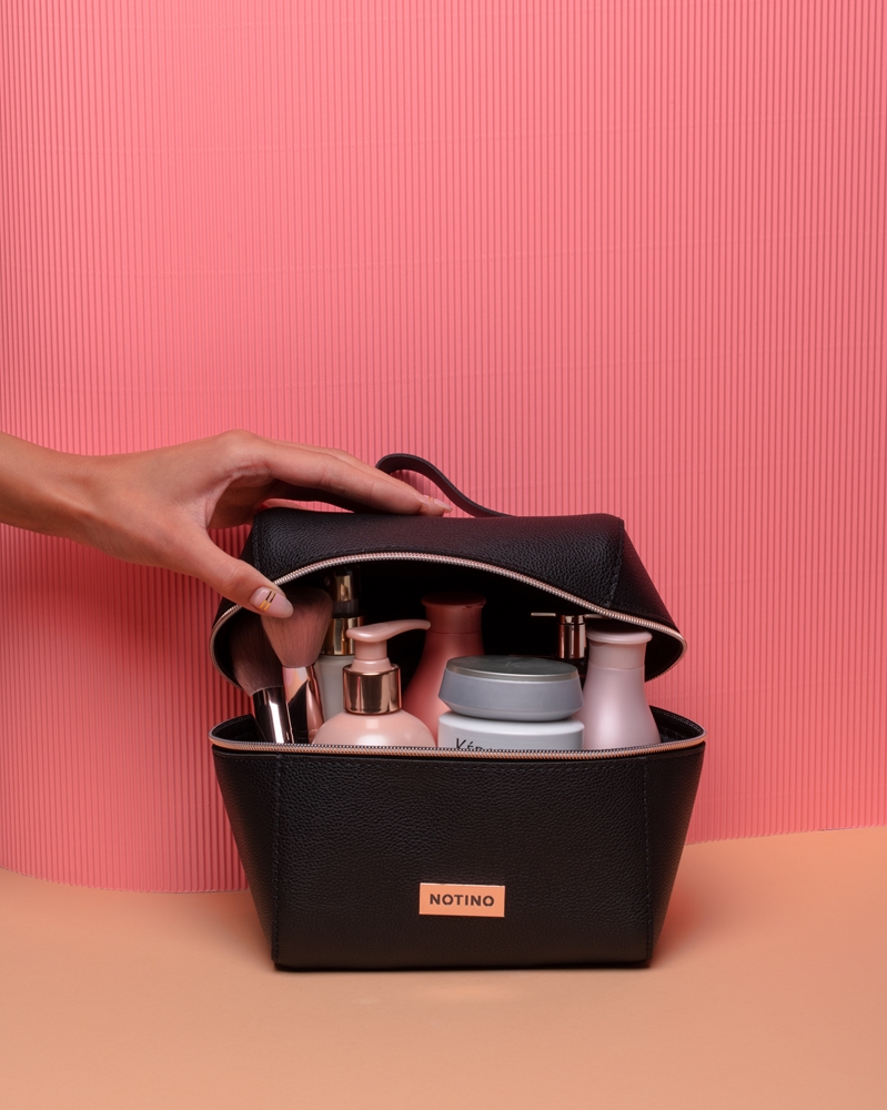 Косметичка Notino Luxe Collection понравится всем поклонницам элегантного черного цвета с первого взгляда. Это изящное изделие вместит все ваши косметические средства, включая крупные косметические средства, такие как шампунь или гель для душа.