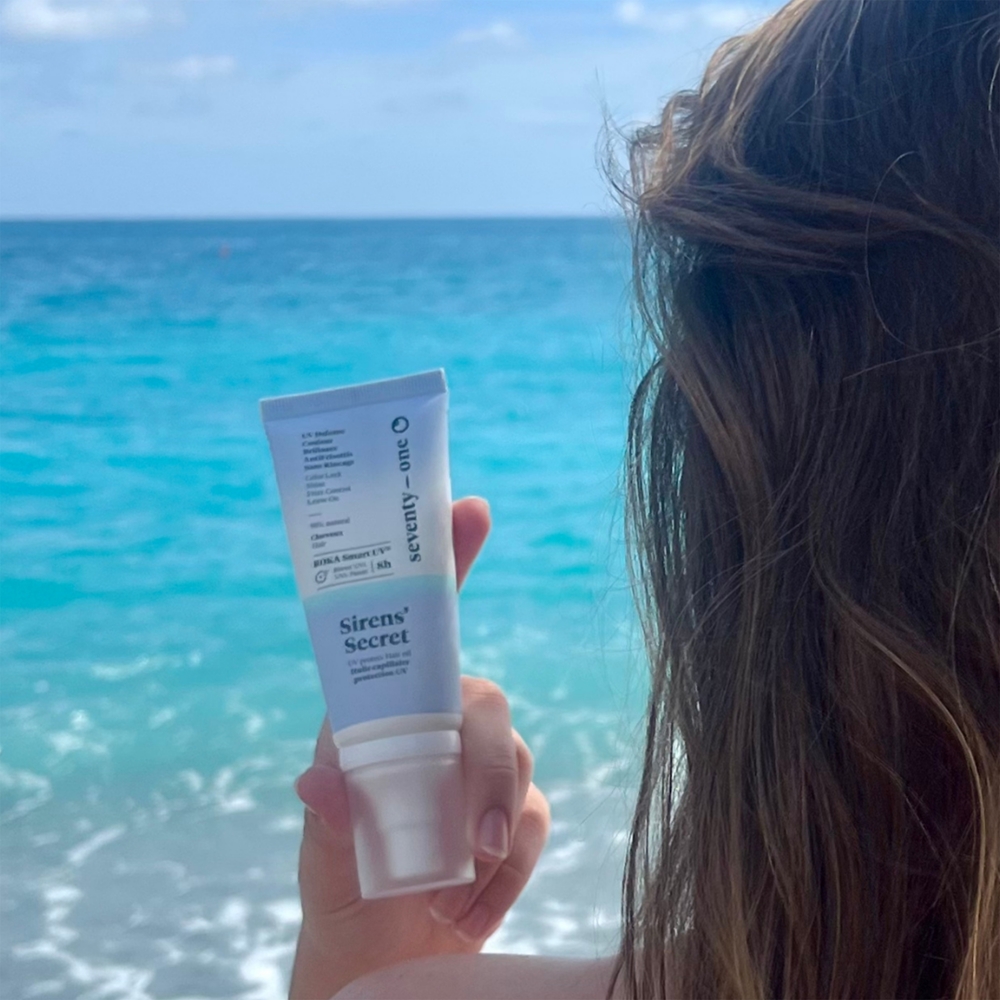 Вредные ультрафиолетовые лучи приводят к тому, что волосы теряют блеск и здоровый вид. Они разрушают основной строительный элемент волосяного волокна - кератин, и таким образом необратимо повреждают структуру волоса. Защитное средство SeventyOne Siren's Secret обеспечивает такую же защиту волос и кожи головы, как солнцезащитный крем для лица и тела. Оно покрывает волосы тонкой пленкой и действует как барьер, предотвращая попадание вредного излучения на волосяное волокно. Поэтому волосы, подвергшиеся воздействию солнца, остаются увлажненными, яркими и неповрежденными.