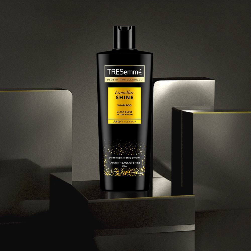 Шампунь TRESemmé Lamellar Shine эффективно очищает кожу головы, тщательно промывает волосы и возвращает им естественную красоту.