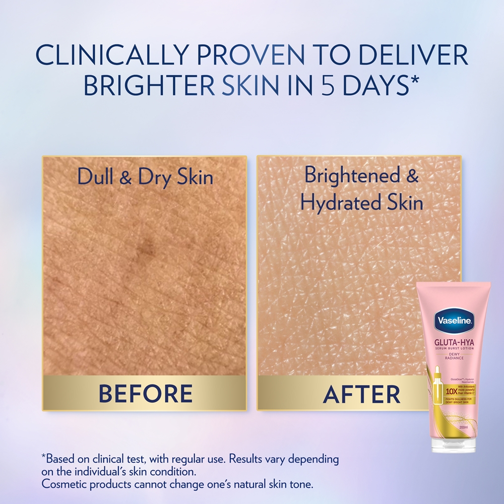 Ваша кожа потеряла жизненную силу и упругость? Сыворотка для тела Vaseline Gluta-Hya Dewy Radiance надежно вернет вашей коже сияние. Содержит увлажняющую гиалуроновую кислоту и осветляющий ниацинамид, которые вернут вашей коже сияние. Легкая текстура при соприкосновении с кожей превращается в освежающие капельки воды, которые мгновенно впитываются, оставляя кожу приятно увлажненной.
