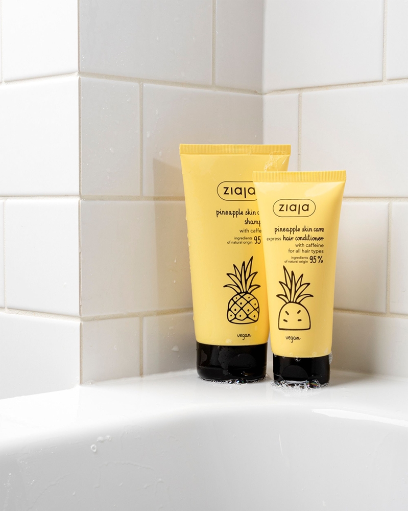 При мытье волос шампунь открывает поверхностную структуру волоса - кутикулу. Поэтому после мытья волос важно ухаживать за ними, чтобы кутикула снова закрылась. Кондиционер Ziaja Pineapple позаботится об этом. Он не только закрывает волосяное волокно, но и питает, увлажняет, смягчает его, без чего волосы не могут быть красивыми, блестящими и здоровыми. Кроме того, он защищает волосы от механических повреждений и сухости, разглаживает их поверхность и помогает смягчить их, облегчая расчесывание и выполнение других процедур.