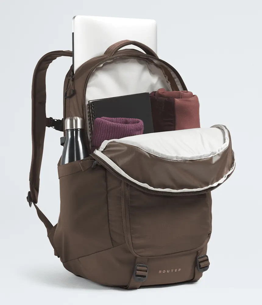 Рубрика Router Backpack, наш самый большой рюкзак для повседневной носки, имеет Объем 40 литров, водоотталкивающее покрытие, вмещает ноутбуки с диагональю до 17 дюймов. Он также получил одобрение Американской ассоциации хиропрактиков благодаря удобной системе подвески FlexVent.