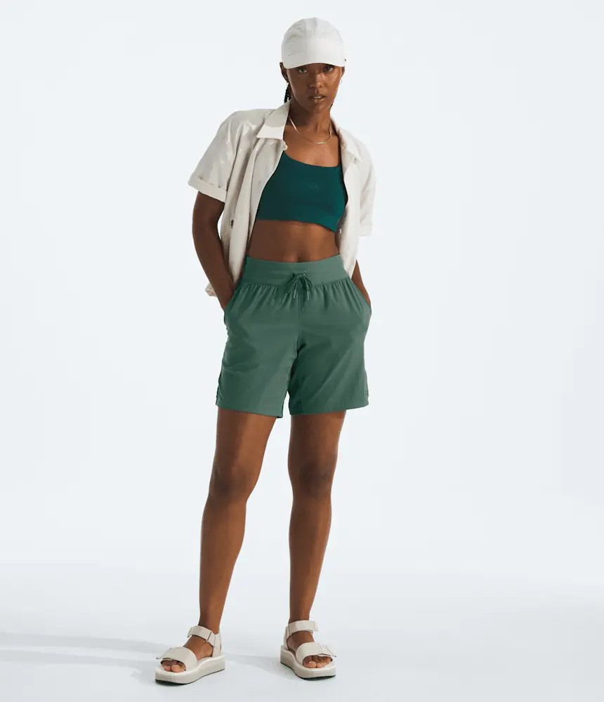 Женские бермуды Aphrodite Motion обеспечат вам прохладу и комфорт. Благодаря ткани FLASHDRY, растягивающейся в четырех направлениях, и высокому поясу для дополнительного комфорта вы сможете исследовать все, куда вас несет ветер.
