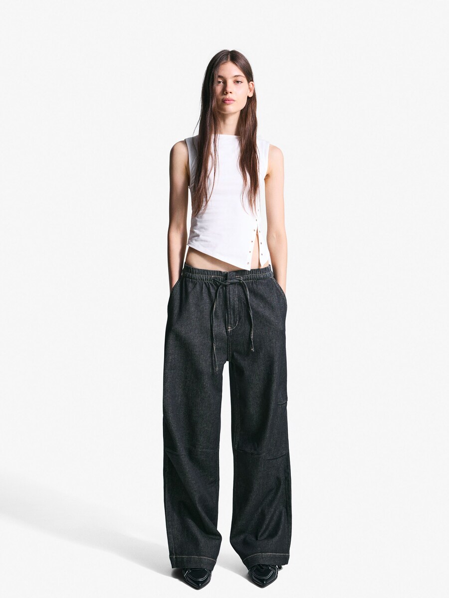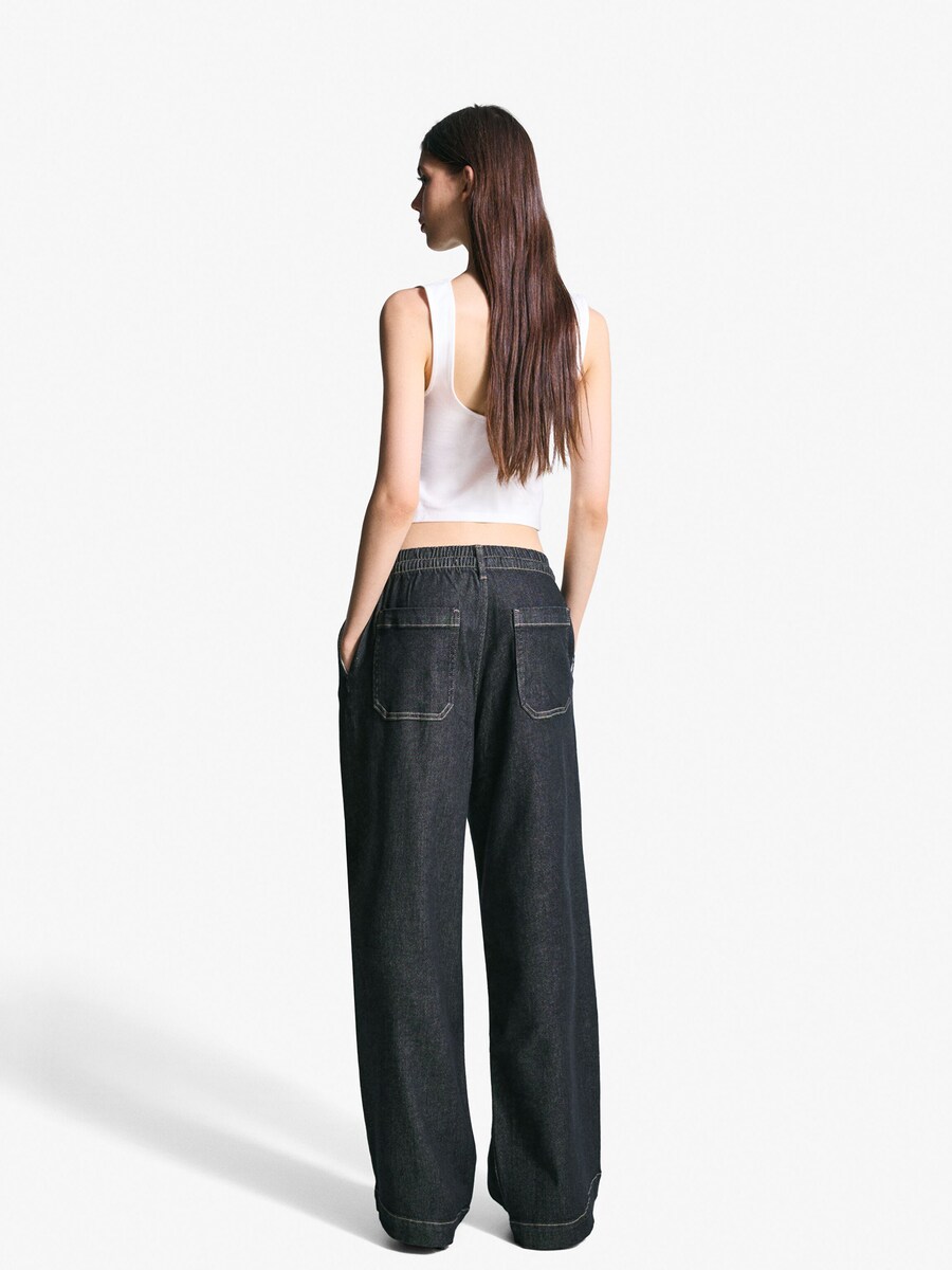 Джинсы с широкими штанинами Bershka, Navy