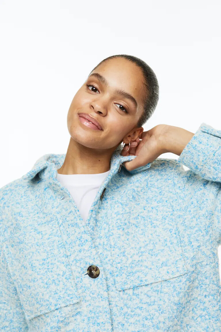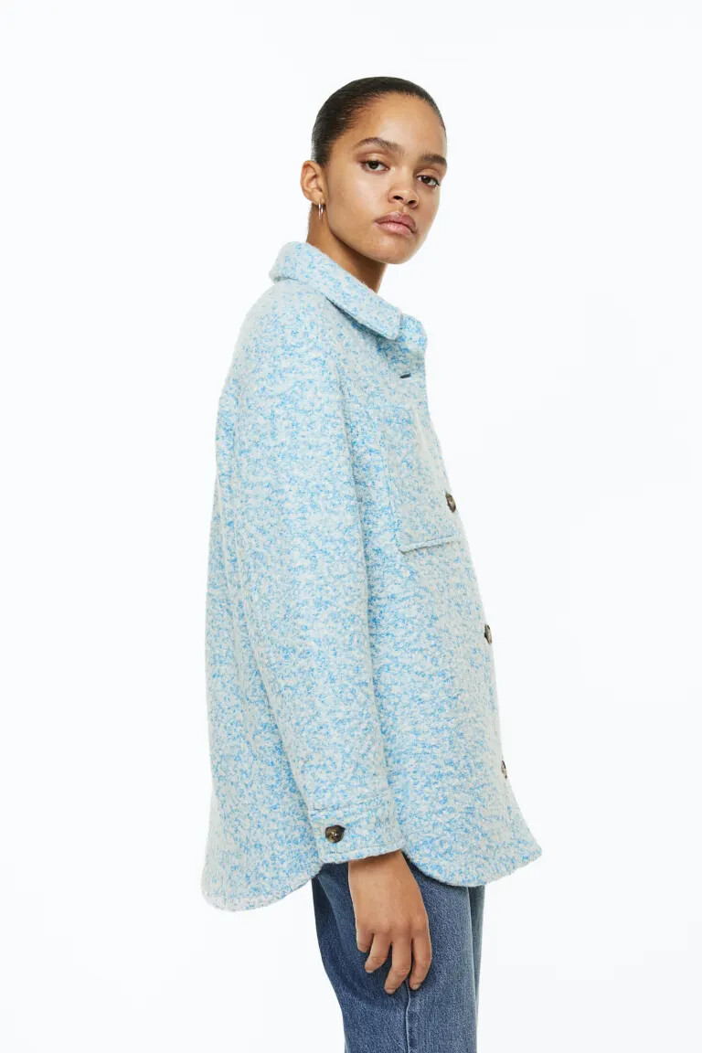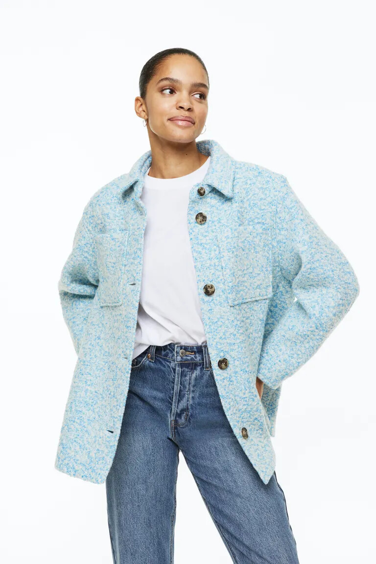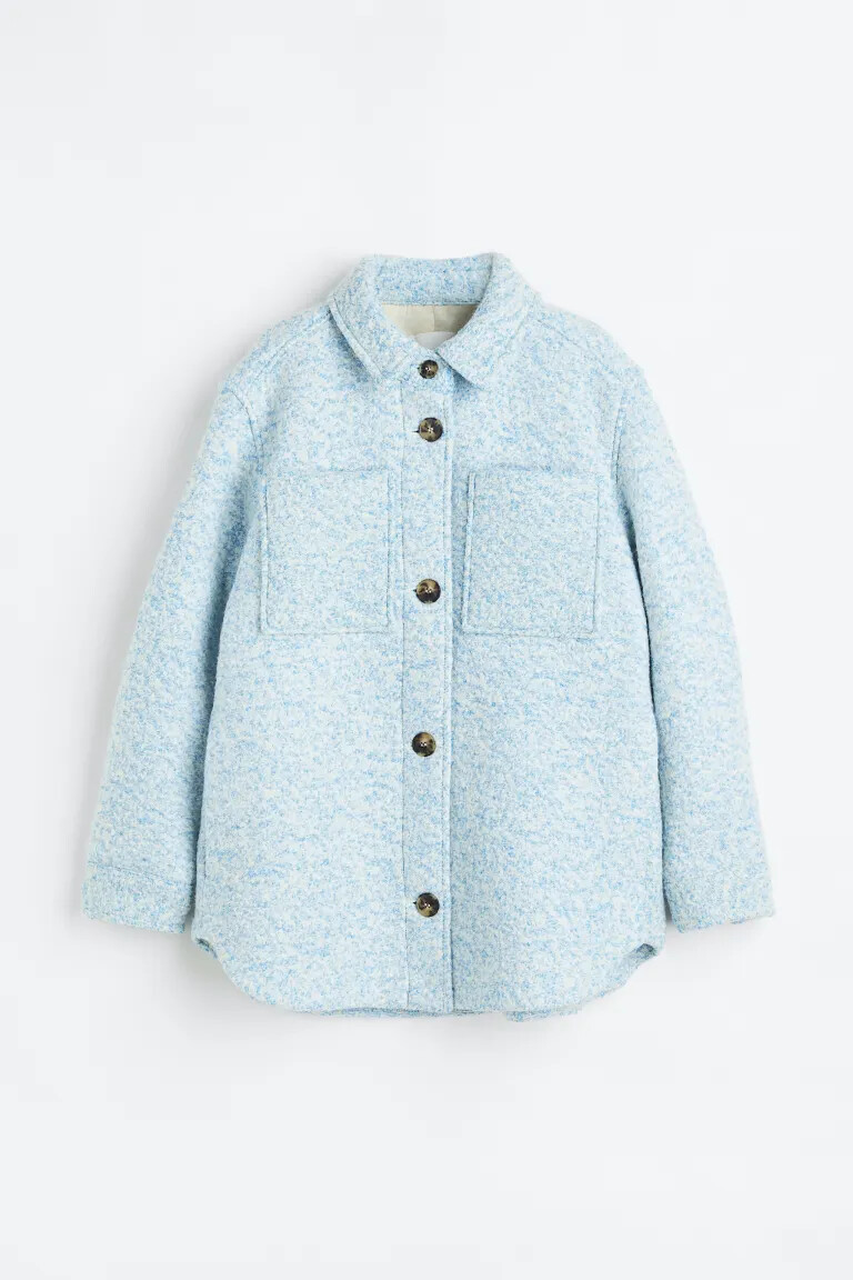 Куртка-рубашка из смесовой шерсти H&M, светло-голубой мергель