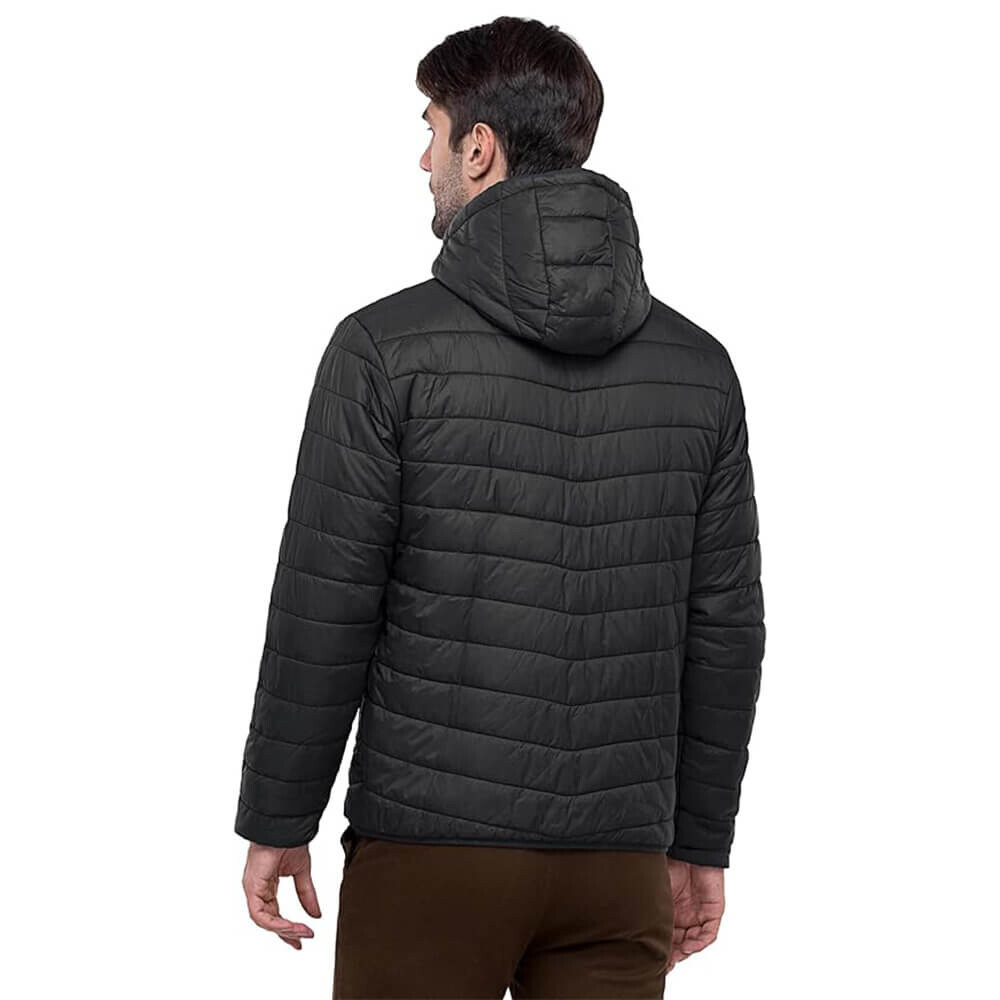 Пуховик на застежке молнии, с капюшоном.
