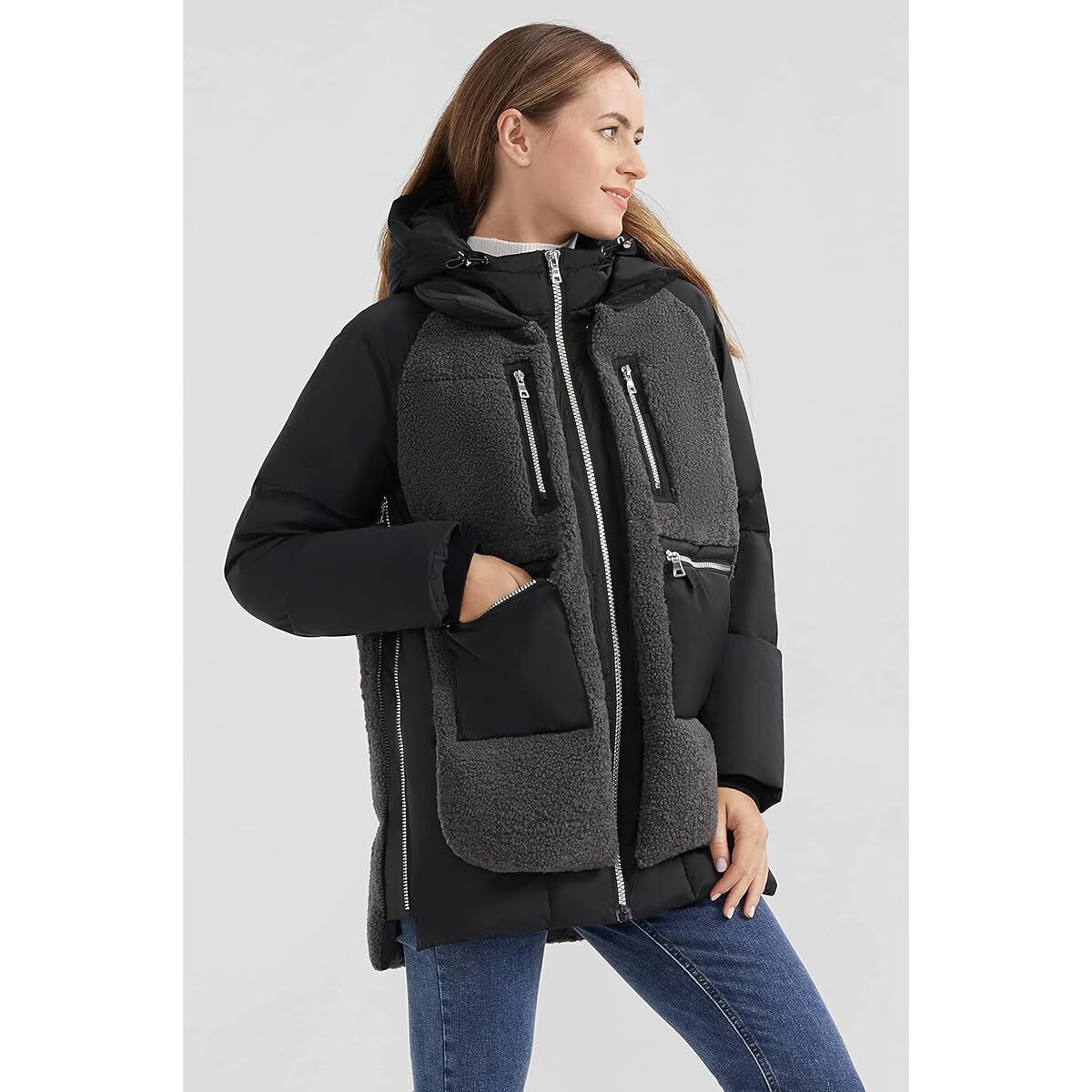 Пуховик с мягкой шерпой и большими карманами. Регулируемый капюшон на шнурке и эластичные манжеты в рубчик сохраняют тепло. Боковые молнии на подоле позволяют легко регулировать посадку.