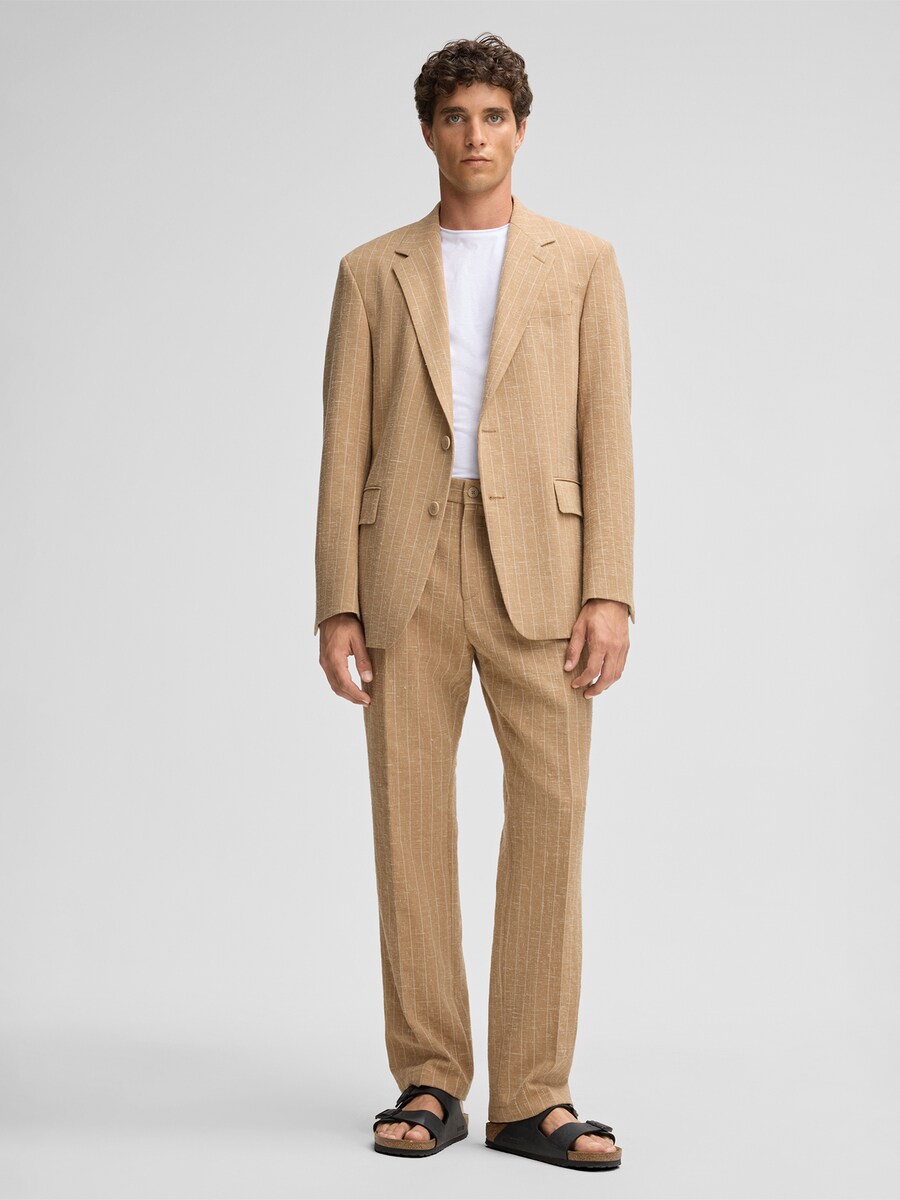 • Материал: 84% полиэстер (ПЭ), 14% лён, 2% эластан