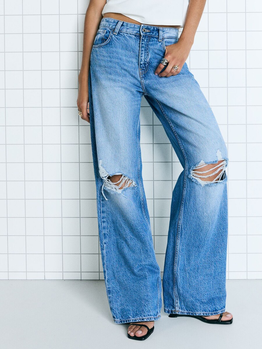 Джинсы с широкими штанинами Bershka, Blue denim 5 846₽