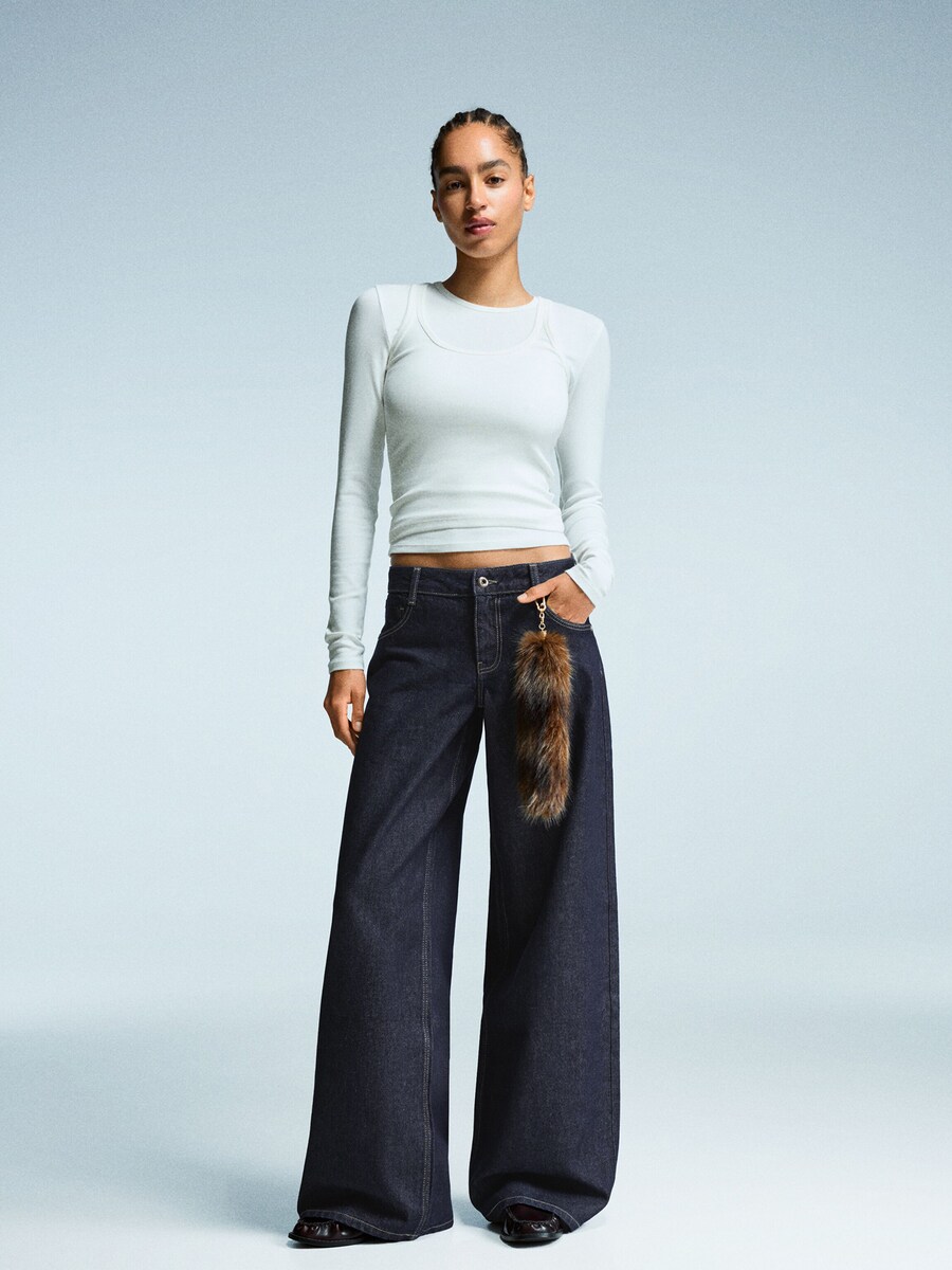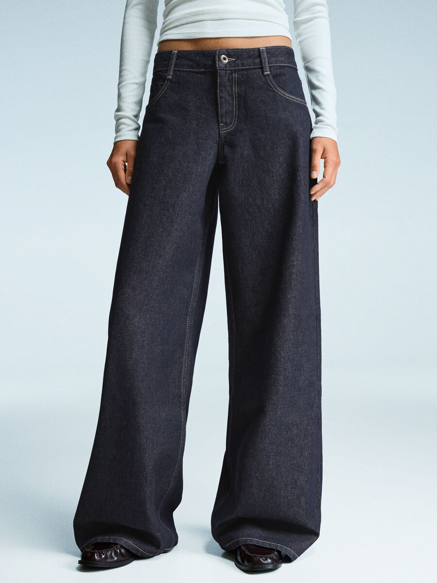 Джинсы с широкими штанинами Bershka, Navy 6 852₽