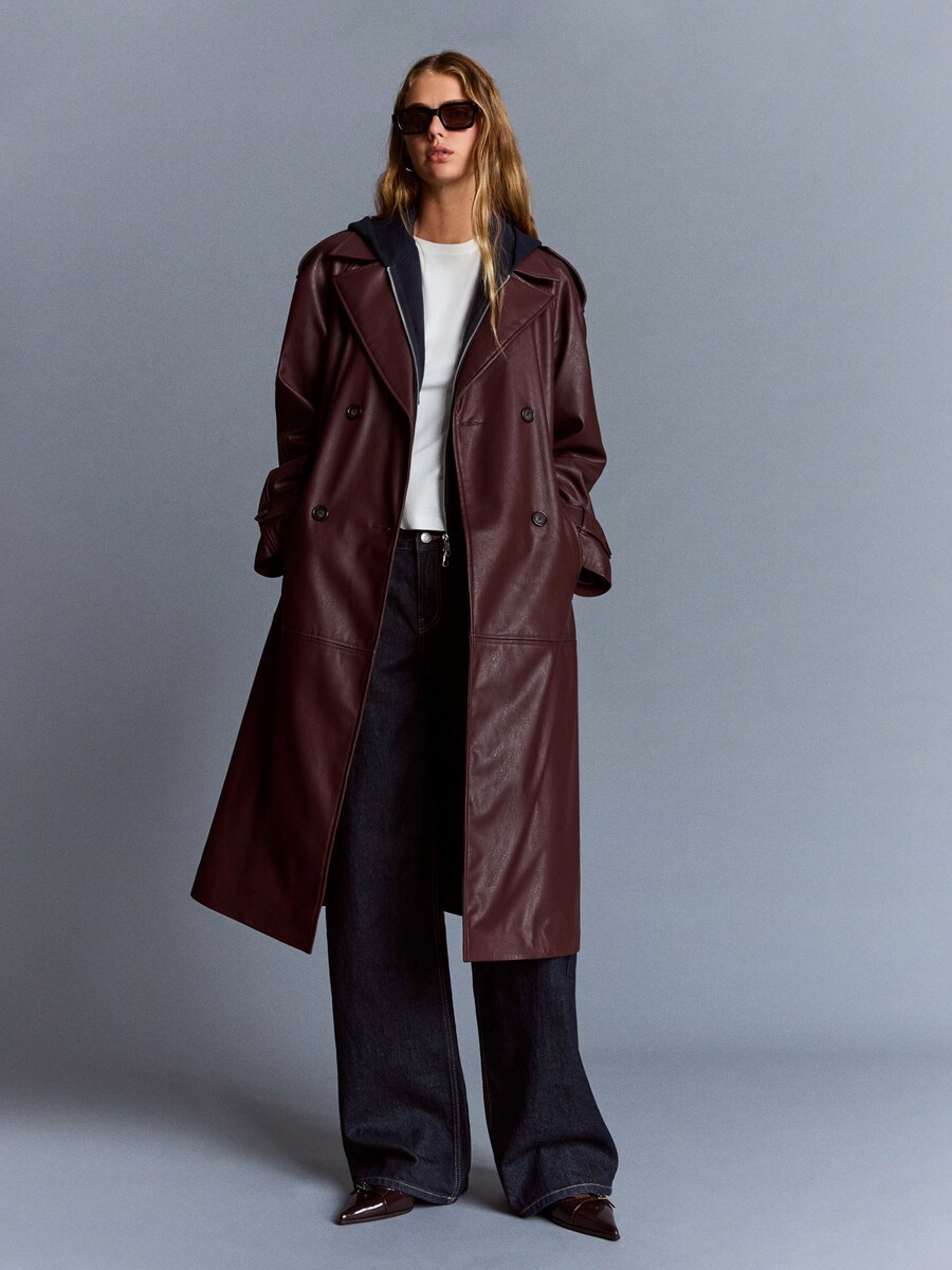 Демисезонное пальто Bershka, Dark red