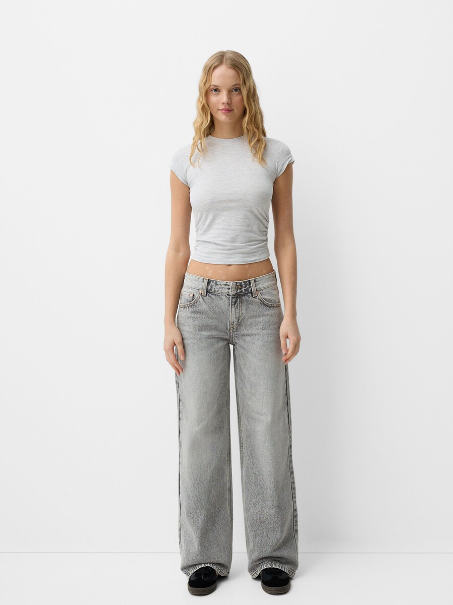 Джинсы с широкими штанинами Bershka, Light grey 5 679₽