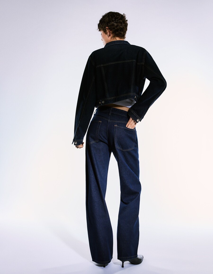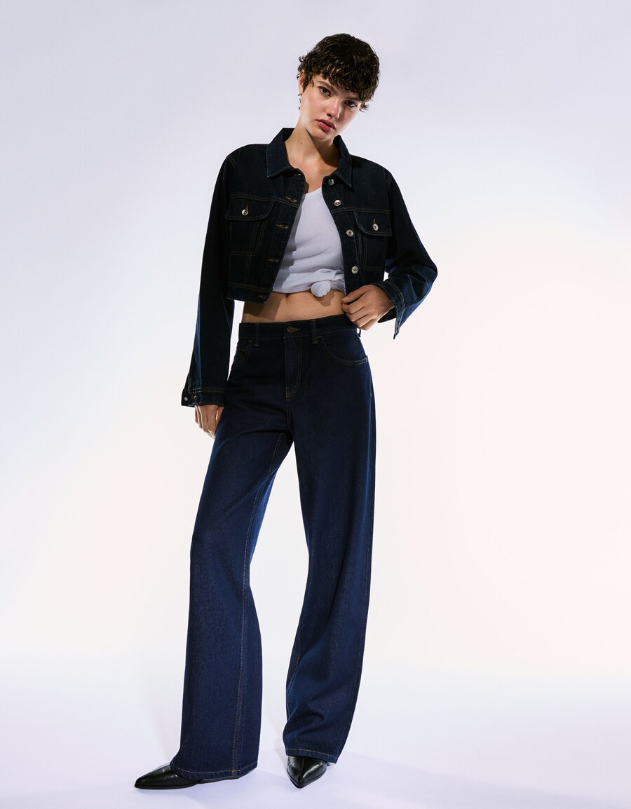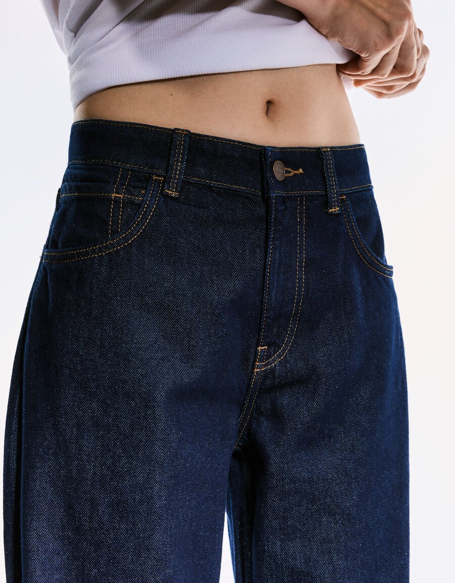 Джинсы с широкими штанинами Bershka, Navy