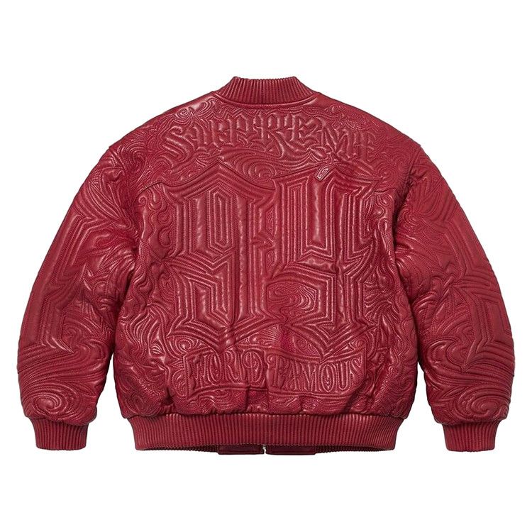 Куртка Supreme Mister Cartoon Embroidered Leather Jacket, Burgundy