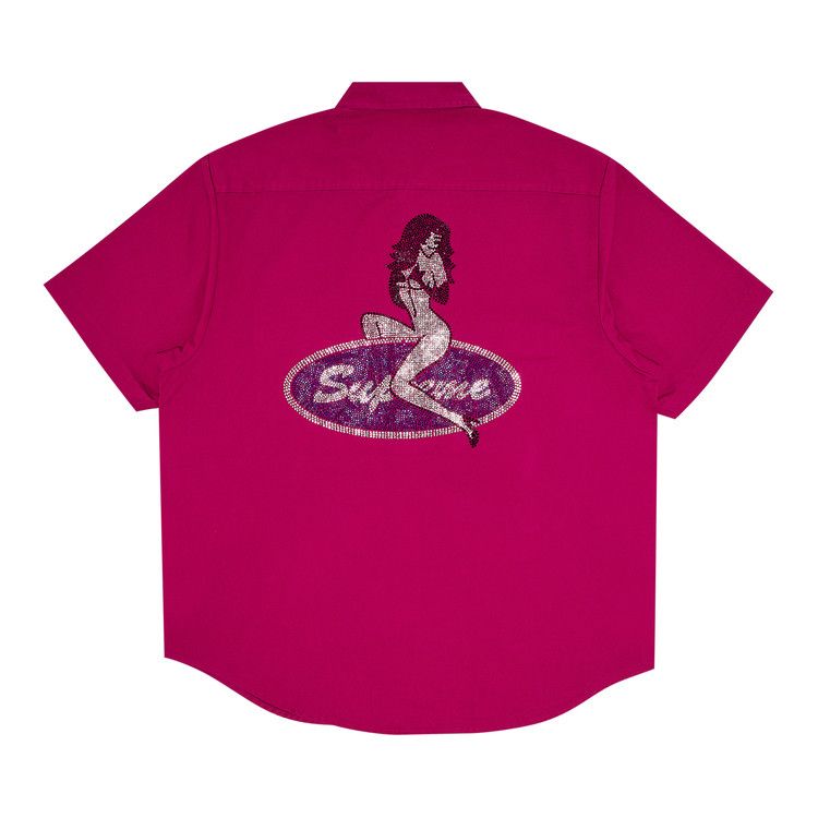 Рубашка Supreme Rhinestone Pin Up Short-Sleeve Work Shirt, Fuchsia