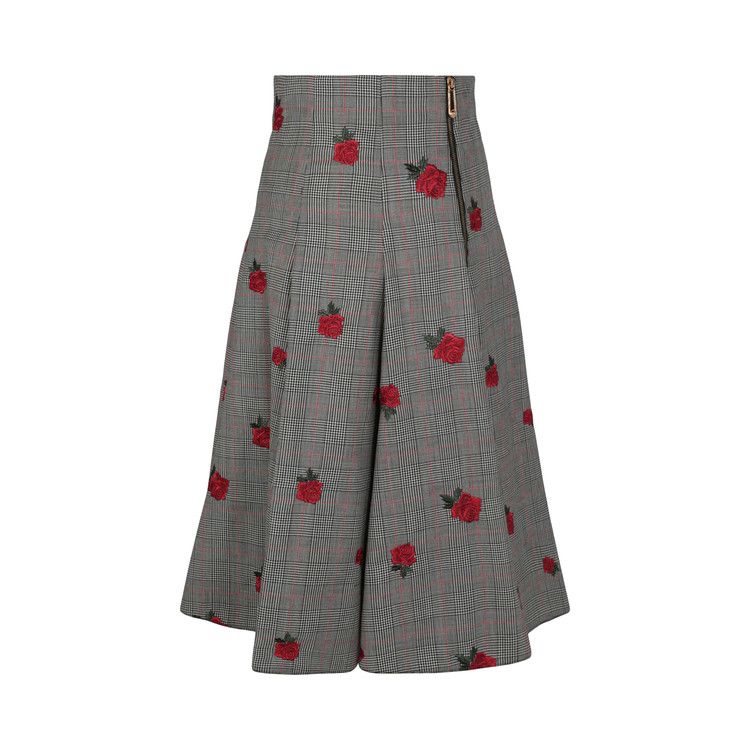 Юбка Versace Floral Embroidered Plaid Skirt, Black