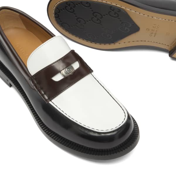 Вдохновленные наследием модного дома, но при этом устремленные в будущее, эти лоферы Gucci изготовлены из гладкой полированной кожи. Съемная монета с фирменным мотивом в виде двойной буквы G добавит изысканности вашему официальному наряду.