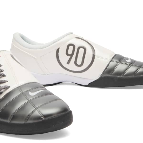 Возрождение Nike T90 продолжается. Кроссовки T90 SP, пробуждающие воспоминания о пинании мяча на школьной площадке и забивании мяча в мусорные баки в джинсах-буткатах в кроссовках Street Striker Уэйна Руни, полностью готовы к городским гонкам. Оригинальный стеганый верх, асимметричная шнуровка и плоская резиновая подошва для повседневной носки - это именно то возвращение, которое мы можем полностью принять.