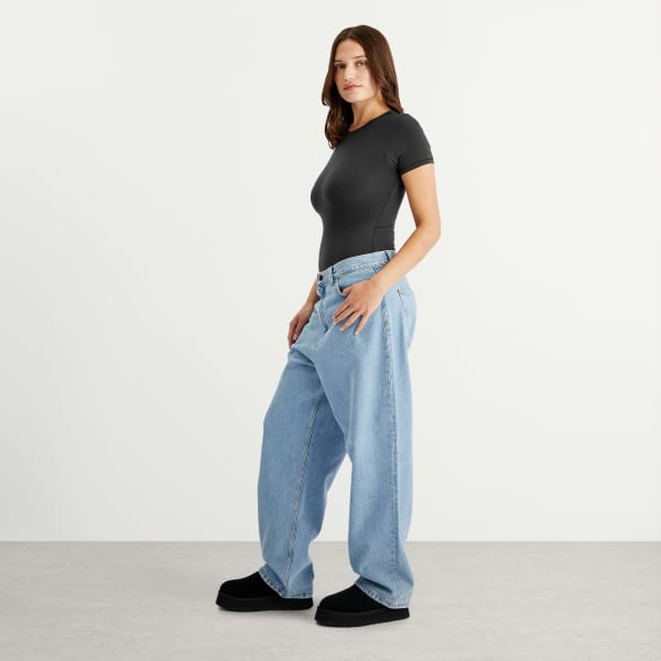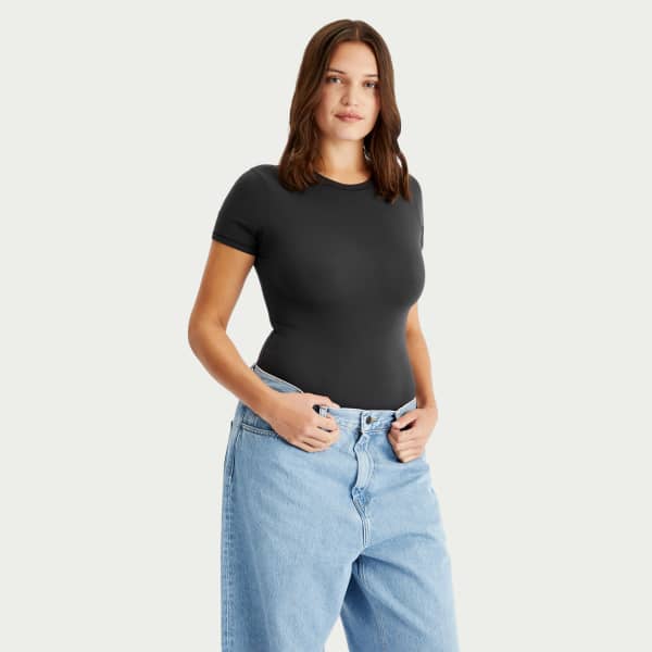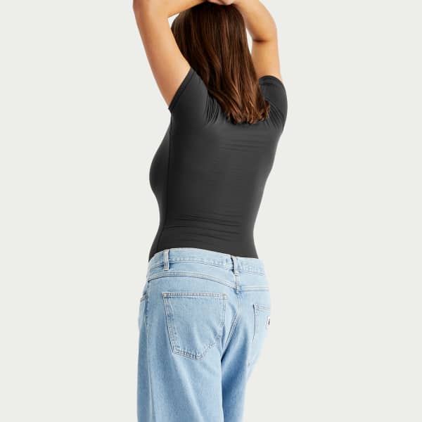 SKIMS мастерски владеет искусством создания изысканных базовых вещей, и боди Fits Everyone - яркий тому пример. Сшитое из легендарной эластичной ткани бренда, оно ощущается как вторая кожа, обеспечивая безупречную посадку. Высокий круглый вырез и высокие вырезы на штанинах создают утонченный, скульптурный силуэт, который легко сочетается как с повседневной многослойной одеждой, так и с элегантными образами.