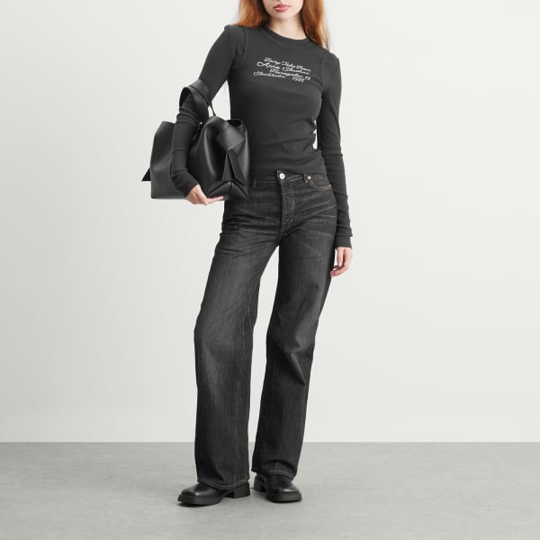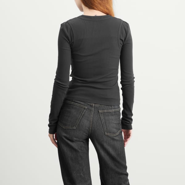 Сила Acne Studios кроется в его противоречиях: четкие линии и оригинальные пропорции, классические формы и неожиданные повороты. Эта футболка с длинным рукавом создает многослойный образ благодаря жилету, украшенному сказочным логотипом на груди. Это скандинавский минимализм с заостренными краями.