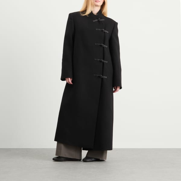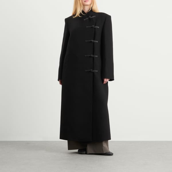 Это пальто Róhe, созданное для дополнения к вашим деловым образам, - воплощение стиля. Куртка изготовлена из теплой шерсти, имеет длину до колена для оптимальной изоляции и застежку сбоку в характерном китайском стиле.