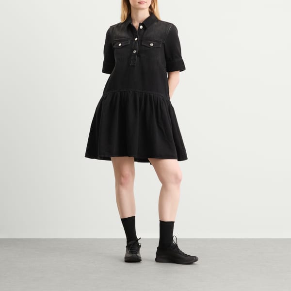 Мини-Платье из мягкого жесткого денима Ganni, Black Washed