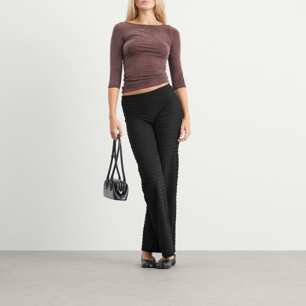 Одеваться как it-girl теперь проще простого благодаря Peachy Den. Брюки Cindy изготовлены из переработанного сирсакера, прямого кроя и идеальной эластичности.