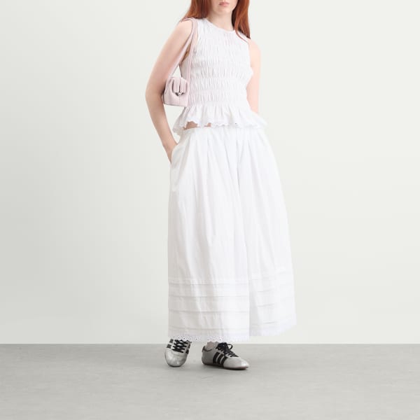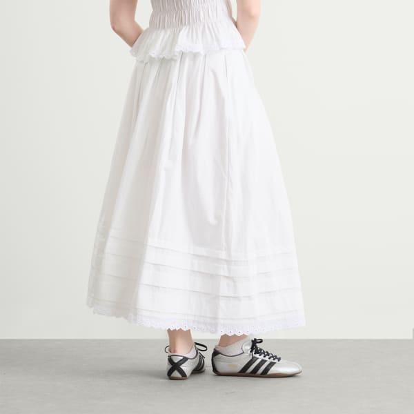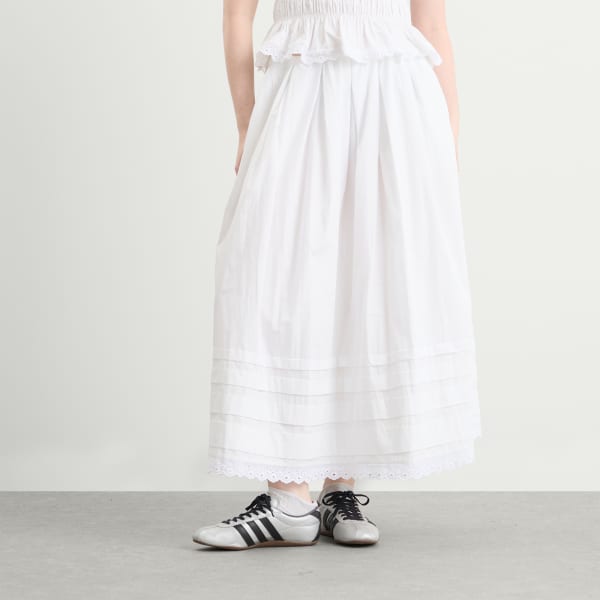 Юбка миди Ruth от Faithfull The Brand выполнена из белоснежного хлопка с мягким А-образным силуэтом и средней посадкой на бедрах. Скрытый эластичный пояс, заправленный для создания четкого силуэта, обеспечивает комфорт, не нарушая формы. Четыре уровня изящных складок и кружевная отделка в винтажном стиле по подолу придают текстуру и свободу движений. Эта универсальная модель, идеально сочетающаяся с топом Thea, идеально подходит для теплой погоды.