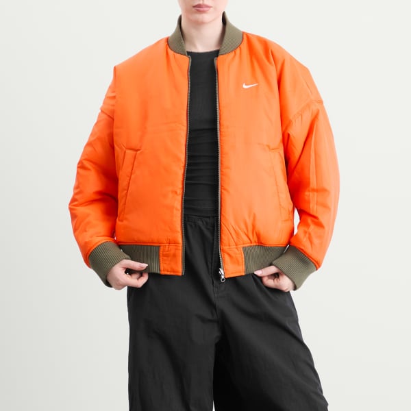 Куртка-бомбер: неотъемлемая часть бесчисленных субкультур и непреходящая икона верхней одежды. Nike представляет свою интерпретацию классики, оставаясь верным оригиналу, с яркой оранжевой подкладкой, которую можно вывернуть наизнанку, создавая полностью двусторонний вид. Куртка дополнена всеми фирменными деталями: ребристым подолом, практичным карманом на рукаве и, конечно же, важнейшим логотипом Swoosh.