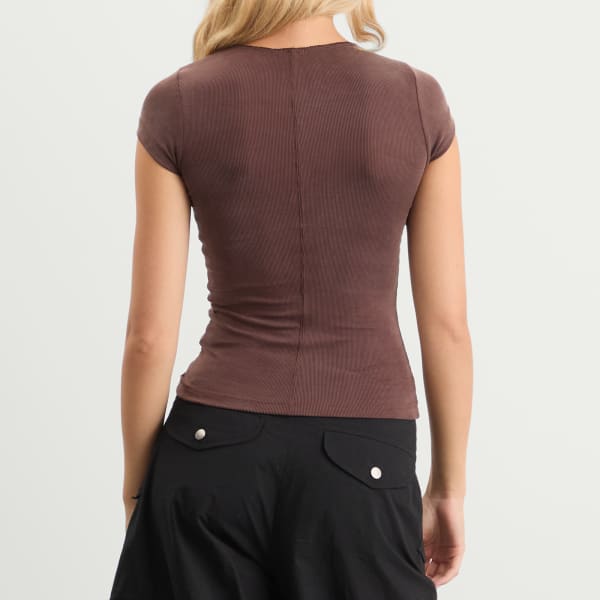 Футболка Second Skin от Fruity Booty коричневого цвета - незаменимый элемент многослойного гардероба, практически не ощущающийся на теле. Мягкая, дышащая и элегантная, она создана для того, чтобы двигаться вместе с вами. Независимо от того, надеваете ли вы ее отдельно или под любимую одежду, эта футболка обеспечит вам комфорт и прохладу.