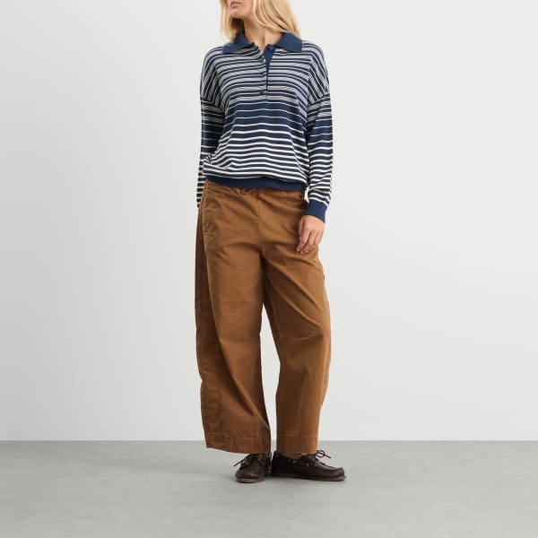 Культовые брюки Felix от Damson Madder возвращаются в этом сезоне в новой, насыщенной расцветке. Эти брюки средней посадки, получившие прозвище «брюки-бочонки», превзошли все ожидания. Они отличаются лаконичными боковыми швами и изящной вышивкой на заднем кармане.
