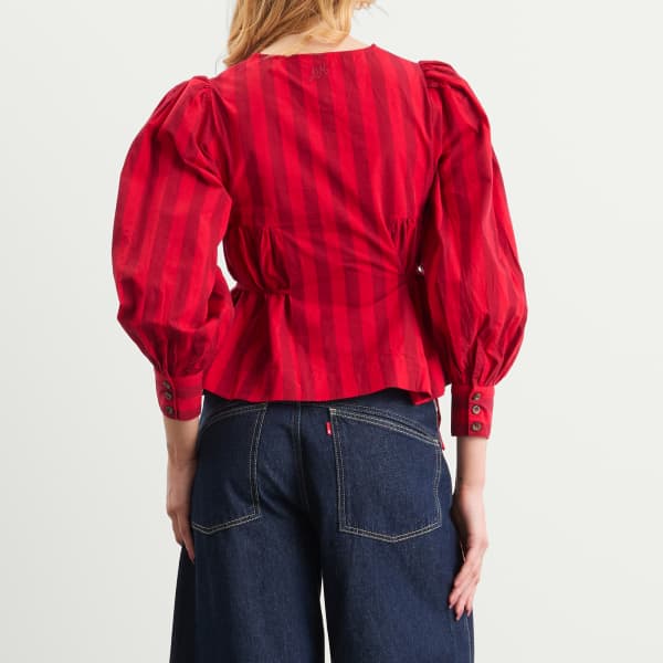 Иногда вашему образу просто не хватает индивидуальности - и именно это привносит блузка Damson Madder Charlize. Изготовленная из органического хлопка в яркую красную полоску, она обладает игривым стилем благодаря регулируемым завязкам на талии, которые позволяют носить ее по своему вкусу. Свободный, привлекательный и очаровательный образ.