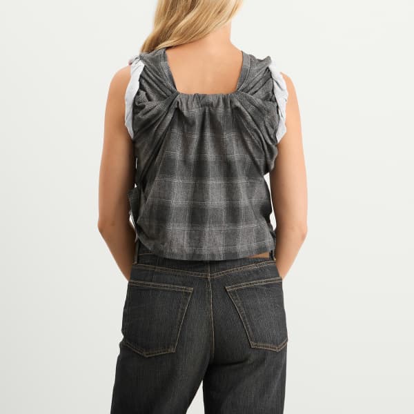 Футболка Our Legacy Twisted - это переосмысление классической футболки в скульптурном стиле. Изготовленная из португальского хлопкового трикотажа с клетчатым принтом, асимметричная конструкция натягивает и фиксирует ткань, создавая перекрученный, драпированный силуэт. Сборка на спинке горловины добавляет текстуру и движение, придавая изделию строгий, оригинальный вид.