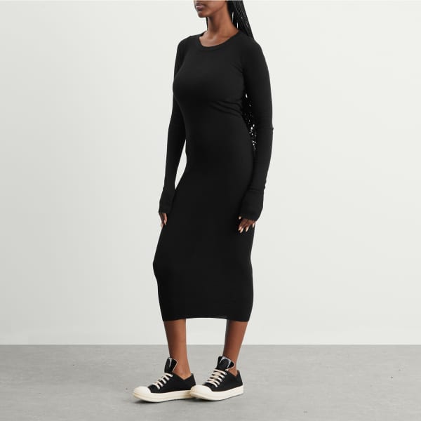 Это платье Rick Owens из хлопка добавит вашему гардеробу элегантности и сдержанности. Облегающий силуэт, подчеркивающий фигуру, длинные рукава и длина миди создают изысканный образ.