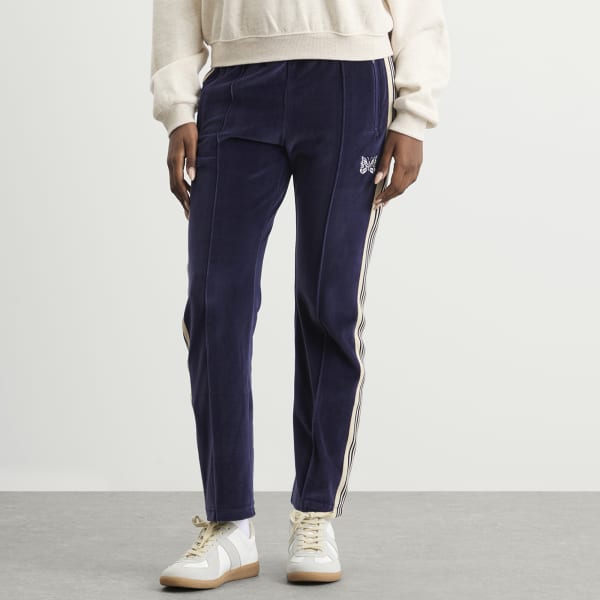 Эти узкие спортивные брюки Needles из велюра, создающего роскошный образ, - незаменимый элемент уличной моды. Проклеенные боковые швы и вышитая бабочка отсылают к студенческому стилю 70-х, а облегающий крой сохраняет элегантность. Культовая классика от Needles.