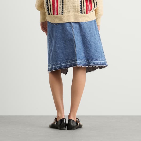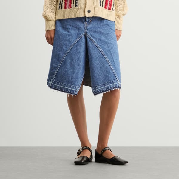 Бренд TOGA ARCHIVES был основан в 1997 году токийским дизайнером Ясуко Фурутой. С тех пор он сочетает в себе смелый авангардный стиль, изысканное японское мастерство и легкий западный шик. Эта джинсовая юбка миди - удачный ход: на первый взгляд она похожа на шорты, но на самом деле это юбка. Такие детали, как тонкий тканевый пояс, бахрома по низу и заплатка в западном стиле сзади, добавляют ей непринужденный, но в то же время актуальный образ.